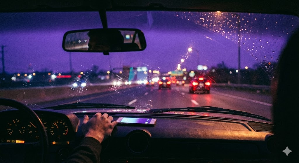 One hand on the wheel